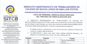 Lista de Personal Sindicalizado derivado del proceso de Sindicalización 2018